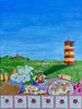 Stachelbeeren und Radieschen aus Großmutters Garten, Eier vom Bauernhof nebenan und Krabben frisch vom Kutter. Der Sekt ist noch kalt und das Brot noch knusprig und warm. Statt Butter gibt's feine Mayonnaise. Neugierige Schafe beobachten was sich am Leuchtturm tut, Kühe grasen zufrieden vor sich hin. Später wird das helle Blau des wolkenlosen Himmels dunkler und dunkler während die Sonne langsam im Meer versinkt und den Horizont gelborange und rot leuchten lässt. Im graubraunen Watt glitzern dann die Priele silbrig im letzten Licht des Tages und die Kirchenglocken läuten leise von der Warft herüber.
